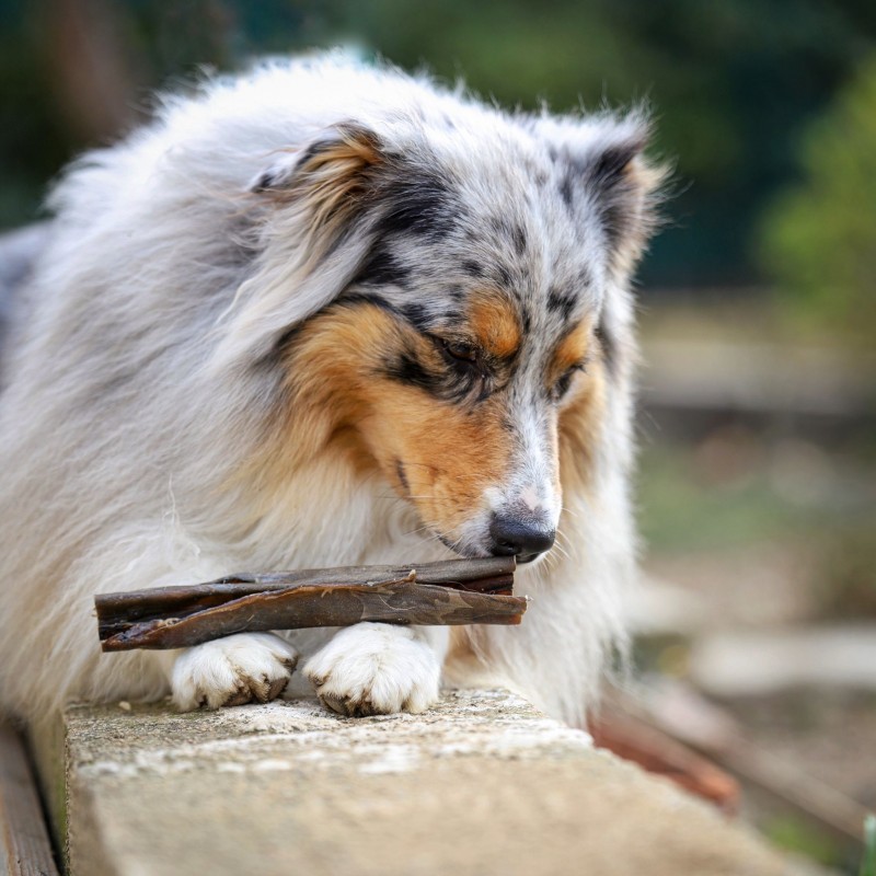 - La trachée de bœuf: c’est un peu le “must have” des chiots et petits chiens. Idéale pour les gencives fragiles, elle assurera la partie détartrage en douceur. La trachée est la moins dure des friandises pour une mastication efficace